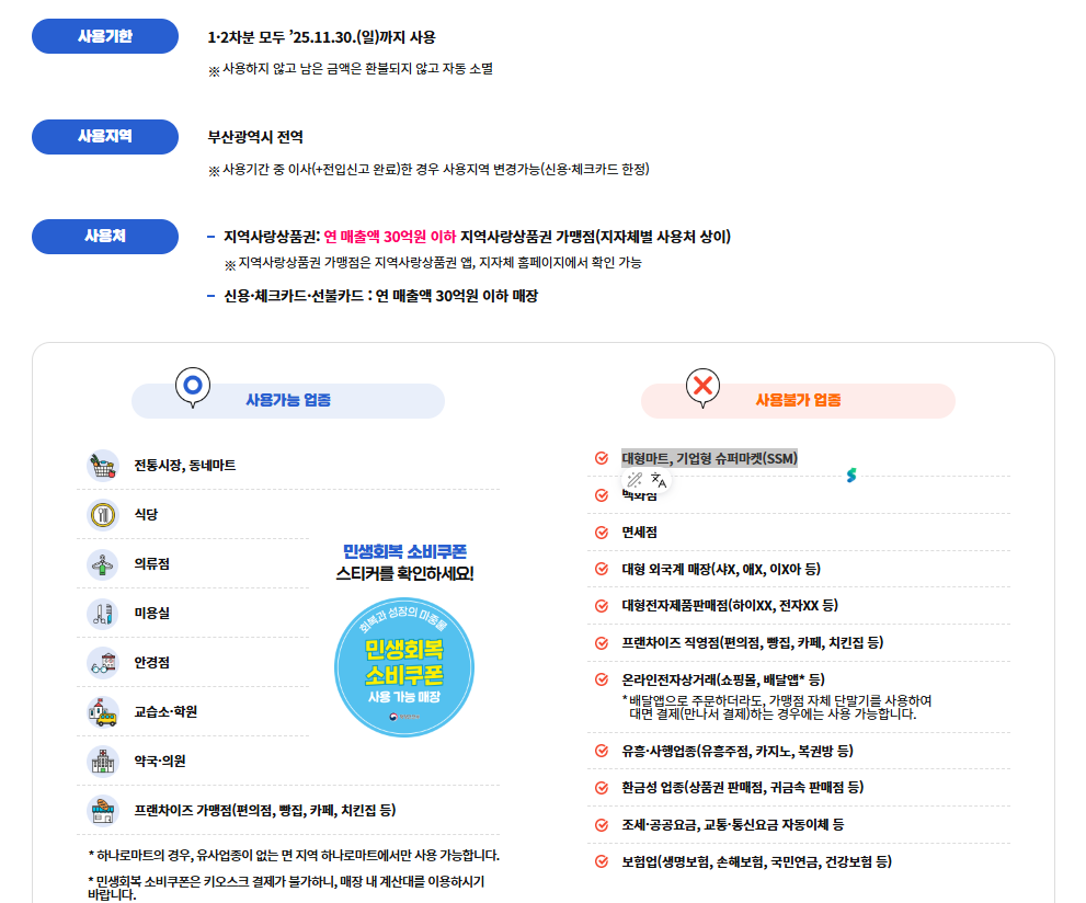민생회복 소비쿠폰은 실물·모바일 카드 기반의 오프라인 소비에만 사용 가능합니다.